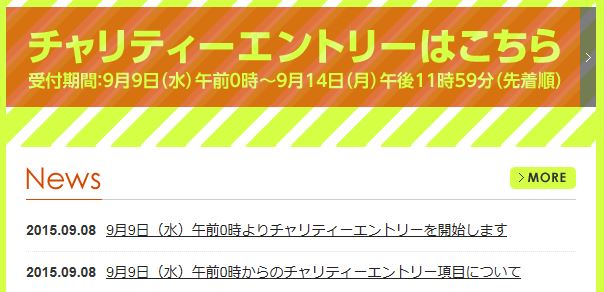 今日9月9日、午前0時からチャリティ枠3,000人のエントリー(先着順)が開始しました。