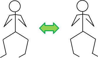 両足は、肩幅より少し狭いぐらいの幅に広げておきます。この状態でペアの人同士、お互いを正面から見て肩の上がり具合をチェックします。左右の肩の高さがだいたい同じならOKです。