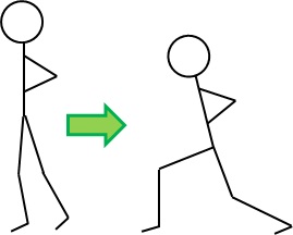脚を前後に大きく開き、片手を地面について、もう片方の手を上にあげる運動…ですが、説明が大変なので動画をごらんください(^_^;