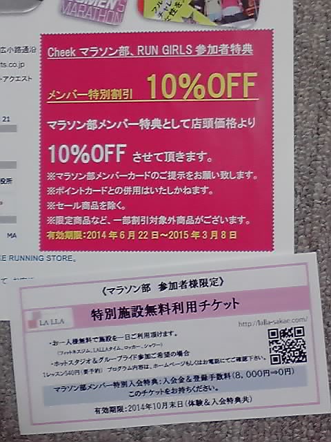 ちなみに、スポーツクエストでの割引特典はCHEEK女子マラソン部が発足する6月22日から、名古屋ウィメンズマラソン当日の3月8日まででしたが、結局この特典は使いそびれました…というのは、セール品は対象外なので、だいたいセール品狙いの貧乏性では恩恵にあずかれないからです(^_^;
