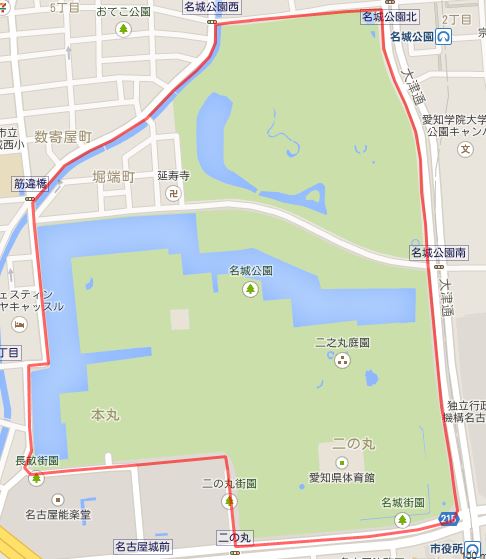 ところが、以前買った「なごやランニングコースガイド 名古屋みちくさランニング。」(名古屋ランニングジャーナル編・著)を読み返したら、ちゃんと書いてありました! 信号に悩まされない名古屋城外周コース。
