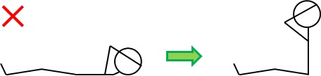 これをもう少し改善したやり方としては、床にあお向けで寝るのは同じですが、ひざを少し曲げておくこと。そして上半身は完全に起こさず、腹筋の力だけで背中を床から持ち上げるようにします。