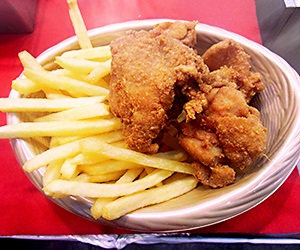 からあげの「ハヤキ亭」でシャカシャカポテト1袋。写真のからあげ&ポテトセットは800円でした。