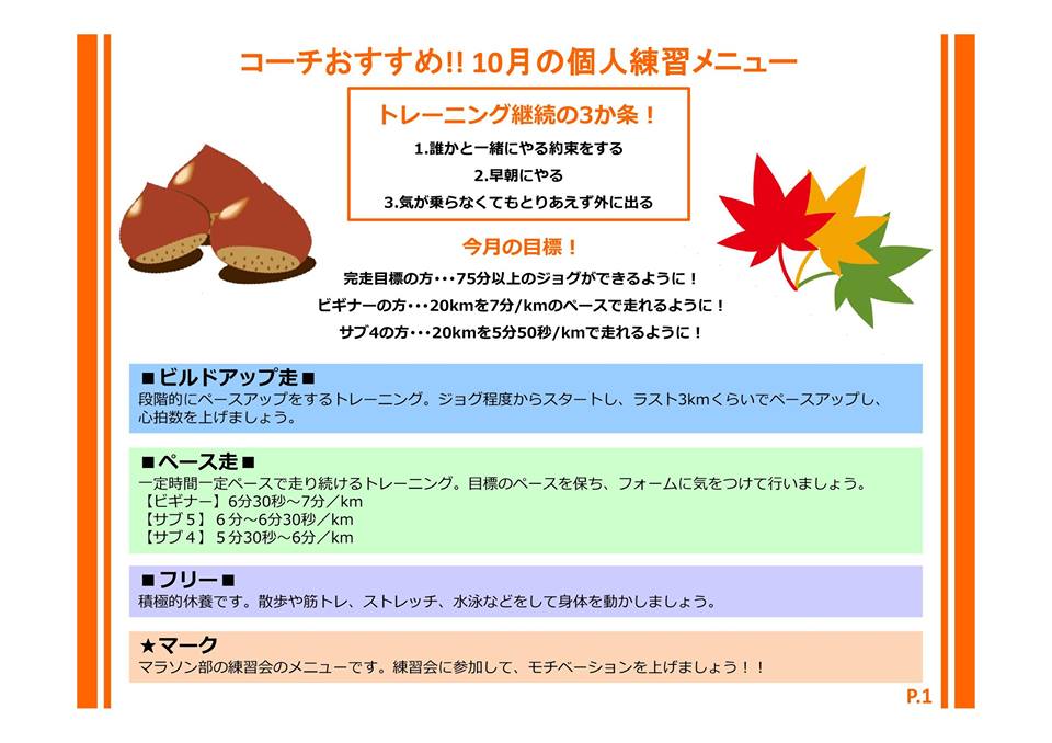 ・土・日のどちらかで大会出場・練習会参加・長距離ラン