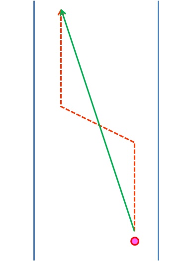おばさん数学は大の苦手ですが、こうして道の左側に戻る時、短時間で戻ろうとして急カーブするのと、時間をかけてゆっくり戻っていくのでは、後者の方が圧倒的に距離が短くて、その分時間のロスが少ないと思います。