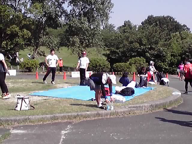 暑いせいかそれほどハードな動きはせず、開会式と準備運動を合わせて10分ほどで終わりました。終わったとたん、またもやぞろぞろと木陰に移動する参加者の皆さん。いや、私もですが(^_^;