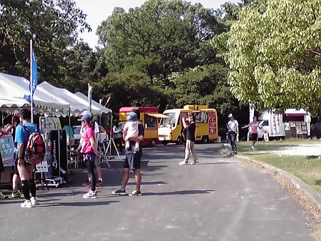 クイック整体やテーピングのブース、それに食べ物の移動販売車も来ていました。本格的や!