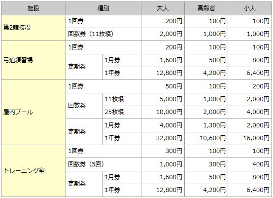 これはナゴヤドームの側にある東スポーツセンターの料金表ですが、トレーニング室の利用料は1回300円! 回数券や定期券を利用すればさらに安っ!!