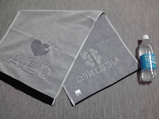 他に、参加賞はタオルとポカリスエット1本! 黒系のタオルがなかなかスタイリッシュですね♪