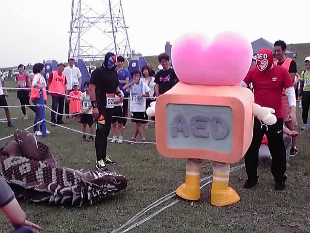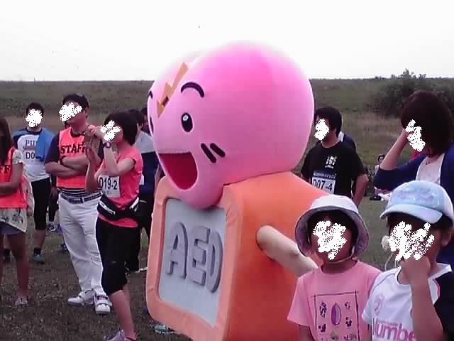 実はこれ、AED普及のためのマスコットキャラクター「エイーデちゃん」だそうです。かわいいですね(*^^*) この後、小さい子供さんたちにまつわりつかれたり、女の人たちに記念撮影をお願いされていました。
