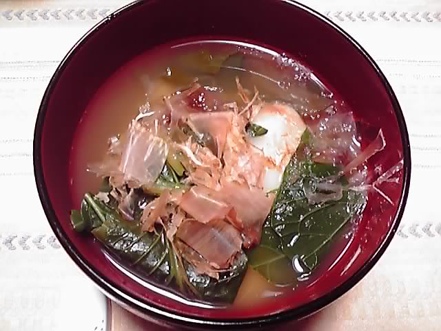 これが我が家のお雑煮です。すまし汁の中におもち(角切り)、もち菜、かつお節のみ! でらシンプル! もち菜というのは小松菜によく似た葉物の野菜です。(この画像もネットでお借りしました。)