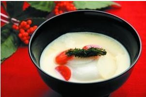しょっちゅうネタになっているのはもちろん香川県のアンコ入り丸もちの白みそ仕立てのお雑煮です。(写真はネットからお借りしました。)