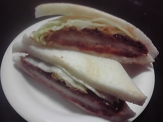 お肉はしっかり厚みがあるけど十分にやわらかくて、ボリューム感たっぷりですがケチャップ味のせいか後味は意外にさっぱりです(^-^) パンがトーストしてあるのもいい感じですね。
