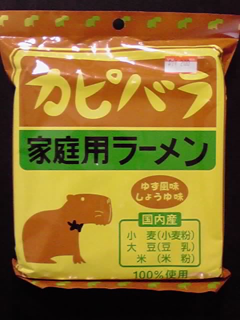 カピバララーメン216円。埼玉県こども動物自然公園とのコラボ商品で、味はゆず風味しょうゆ。って、なぜカピバラでゆず風味? もはや連想ゲームですらない…