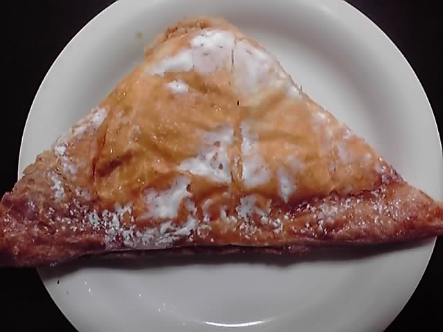 このサツマイモフィリングは、天然のままの味に近い素朴でひかえめな甘さですが、そこにほどよく加えられたリンゴの甘酸っぱさと好相性! それを包むデニッシュはしっとりしている中にも香ばしく、これで100円は安すぎですわ(^q^)人気があるのもうなずけます。
