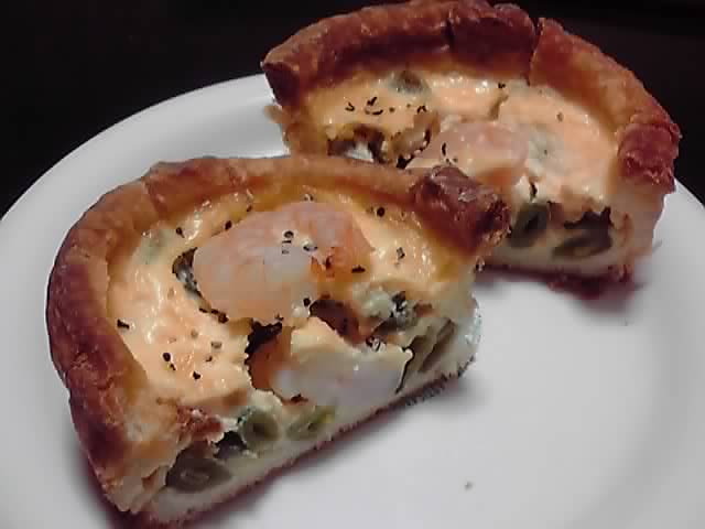 まず、エビとスナップエンドウのキッシュ。
