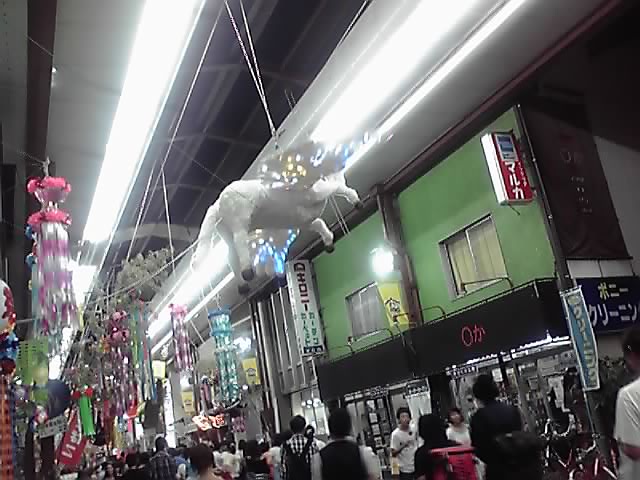 屋台だけでなく、商店街のお店も食器が1個10円とかの七夕限定セールをされていて、ずいぶんお得でしたよ♪ カットスイカ・メロン・パイナップルを格安提供する果物屋さん、全品3割引きという履物屋さんetc…ついいろいろ買い物してしまいました。