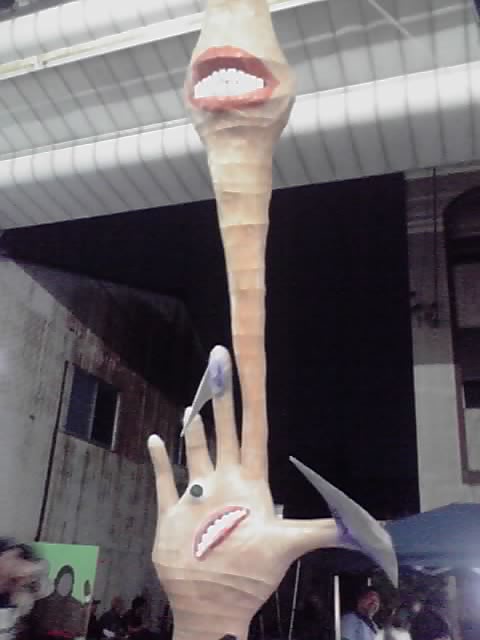 そして最大のインパクトを与えていたのが寄生獣のミギー。でかすぎて顔(?)が入らんでかんわ…