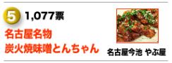 そして今池のやぶ屋の「炭火焼き味噌とんちゃん」が5位入賞を果たしていますが、やはりこれは今池プロレスのミソ・トン・チャンマンと関係があるのでしょうか…実況の方にも「残忍な焼き鳥屋」と呼ばれていたことですし…謎は深まるばかりです。
