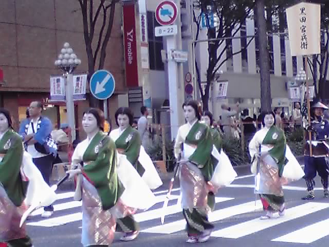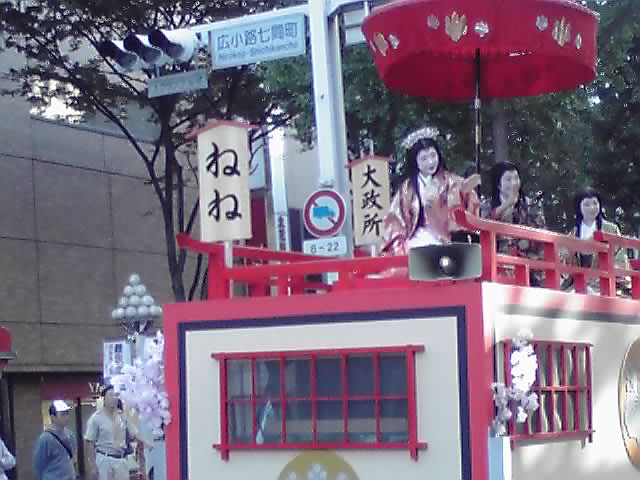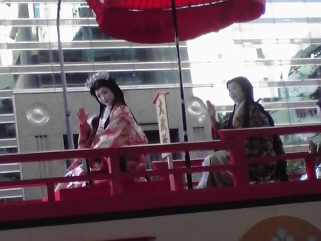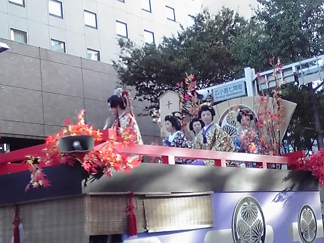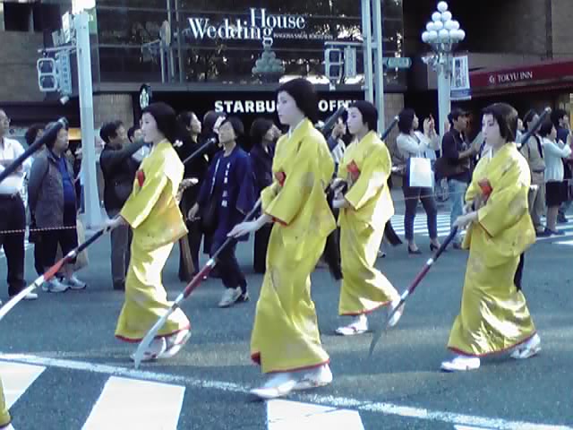 濃姫の山車を先導する腰元たち。なぎなたを手に、りりしい姿です。腰元さんに注目していたら、肝心の濃姫を撮りそこねましたが(TДT)