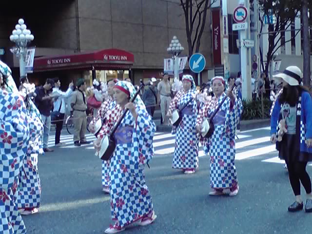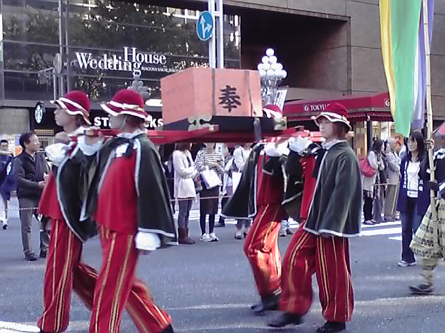 最初に見たフラワーカーパレードからここまで、約1時間ちょっとというところですが、数々のシャッターチャンスを逃して悔しかった私は、住吉通から東の栄交差点に向かい、そのまま早足で大津通を南下して、30分ばかり行列をストーキングし続けました。