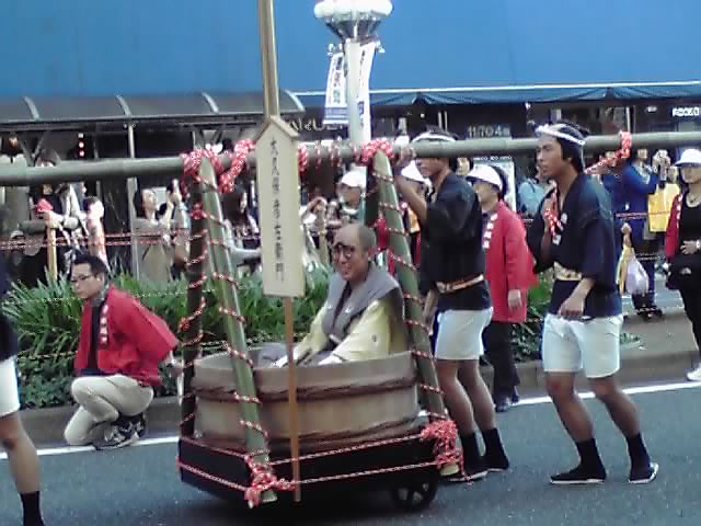 そして、金のヒョウタンと例のド派手な兜で飾られた山車で、秀吉登場! ちなみにこの兜の正式名称は「一の谷馬藺(ばりん)後立付兜」というそうです。