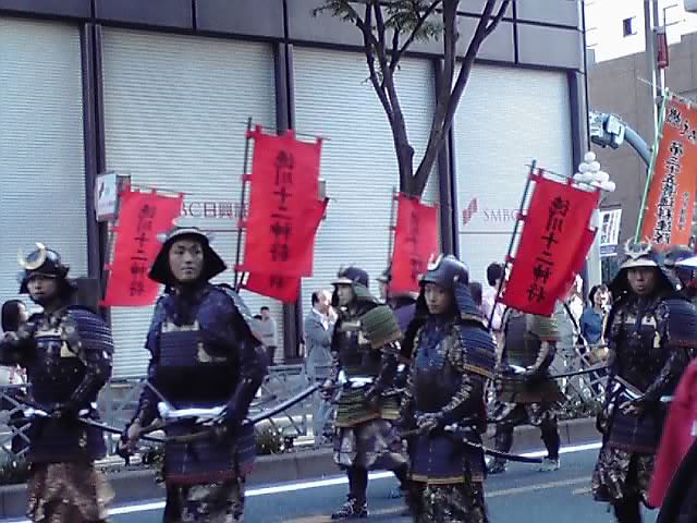 いろいろ、沿道の観客にサービスしてくださっていた戦国武将たち。名前が出ていませんが、大谷吉継だけは一目で分かりますね(^^;