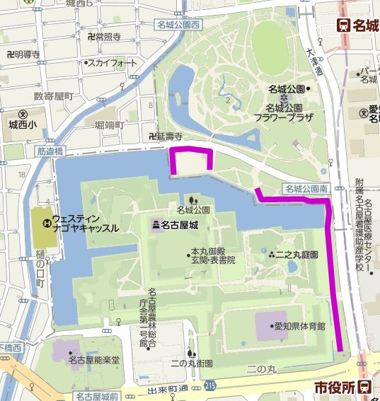 名古屋城を見ながら信号を気にせず走れるコースがあった!