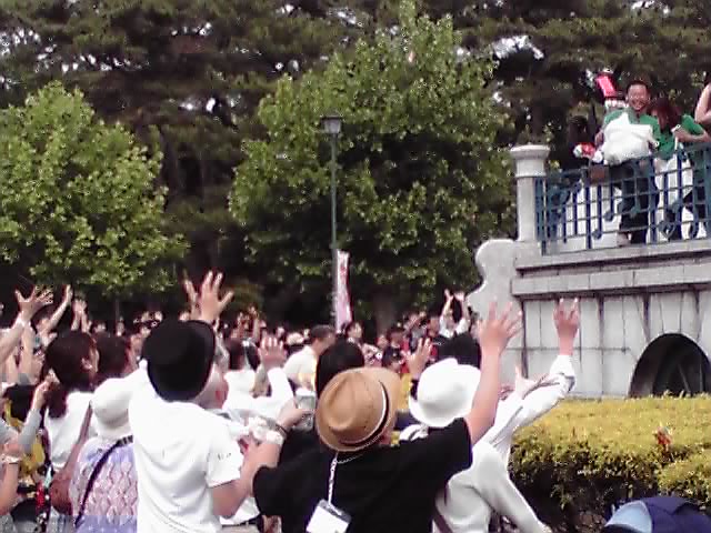 菓子争奪戦はどうせ私の運動神経ではキャッチできないので参加しませんが、興味はあったので奏楽堂に向かいました。バラ園からはすぐですし。