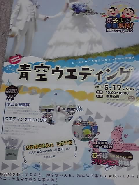 「3時から奏楽堂で青空ウェディングの菓子撒きを行います。どなたでも参加できますのでお集まりください」