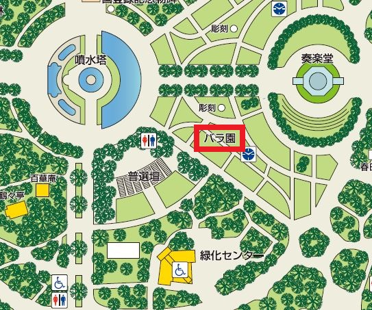 お目当てのバラ園はその真ん中ぐらいに位置しています。
