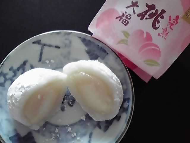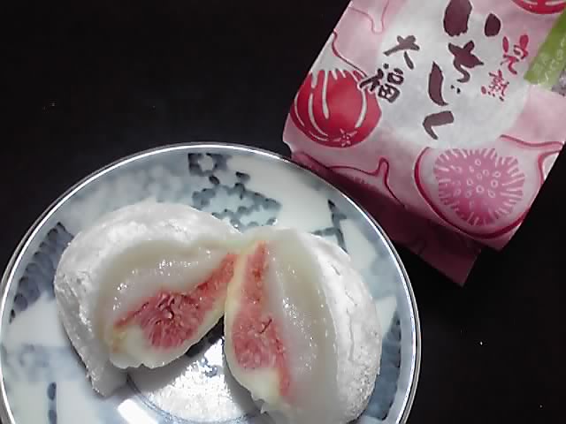 完熟桃大福238円、安城市のイチジクを使ったイチジク大福260円! シャキッとした果肉と、果肉の風味がほのかに移った白餡とが何とも乙な味です。