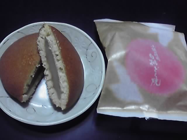 白桃どら焼き173円。さらりとした舌触りのなめらかな白餡の中に、桃の風味がしっかりと活きている、新感覚の和菓子です。