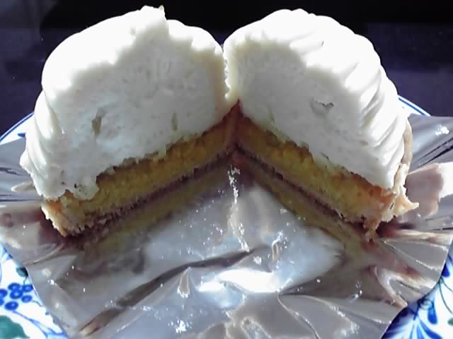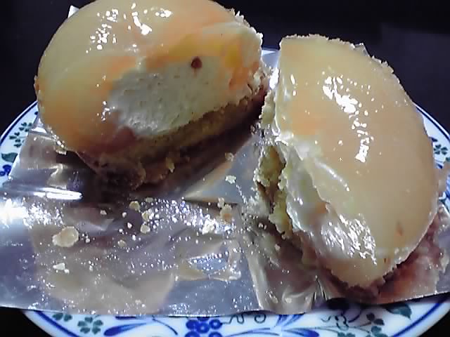 こちらが中身。どうもこのお店では、生の桃ではなくコンポート、あるいはシロップ漬けを使っているようです。果肉のシャキシャキ感はない代わりに、柔らかさとジューシーさが増しています。