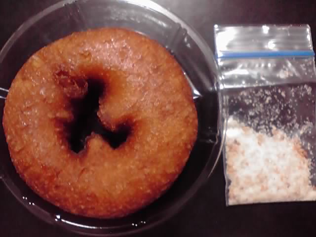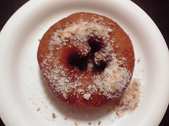 すりごま(砂糖入り)をドーナツにたっぷりかけて、いただきます♪