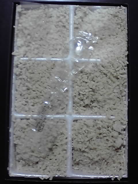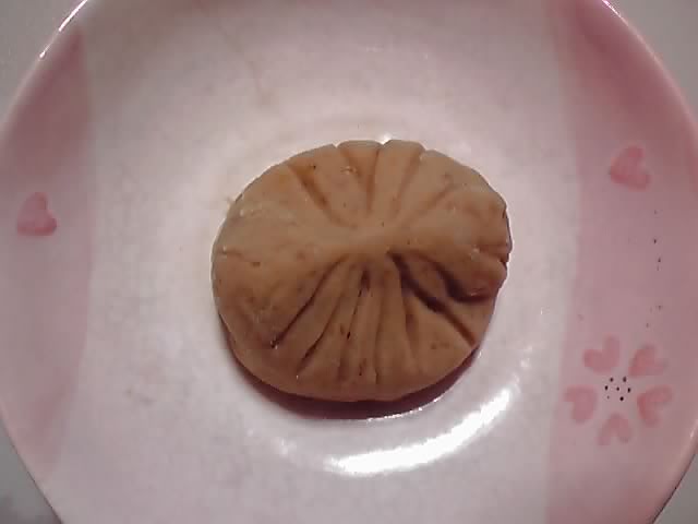 で、これが問題の栗粉餅です。箱を開けると一面に薄い黄色のそぼろ状の栗の粉!