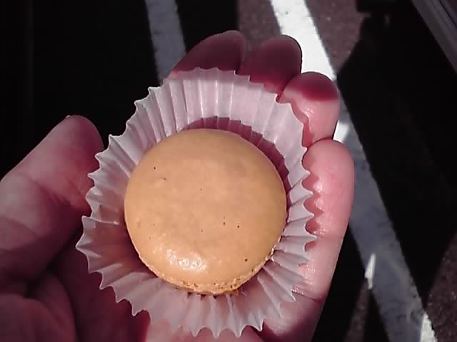 ここではショコラ・キャラメル・フランボワーズの3種類のマカロンから1個が選べます。私はキャラメルを選んでみました。