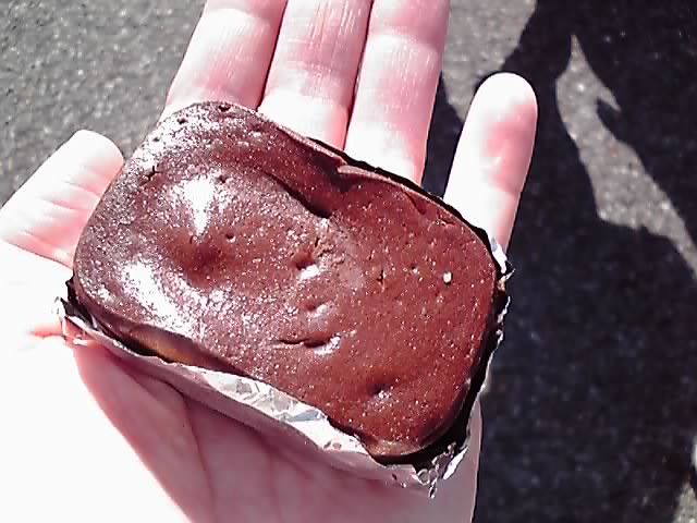 「はんじゅくチーズ」と「はんじゅくチョコ」の好きな方を選べるはずが、買い物をしたりして出遅れたせいか、着いた時にはチョコの方しか残っていませんでした。
