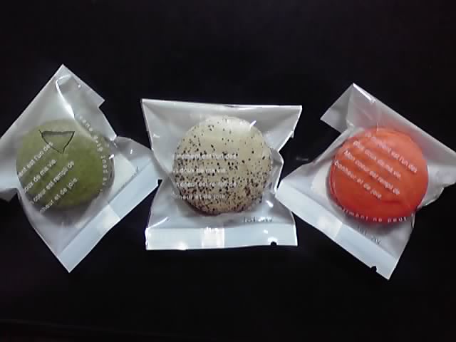 生地が普通のマカロンよりクッキーぽくて、香ばしく食べ応えのある味です。他の味も試したくなったので、店内に入ってマカロンを買い足してしまいました。10種類あって1個190円! 写真は抹茶、カフェ、ショコラオランジュです。