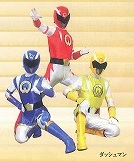 この時、「おおぐち元気戦隊ダッシュマン」というローカルヒーローも登場していました。男性のレッドとイエロー、女性のブルーの三人の戦隊で、大会を妨害しようとしていた悪の秘密結社ダラークを撃退してくれたようです。