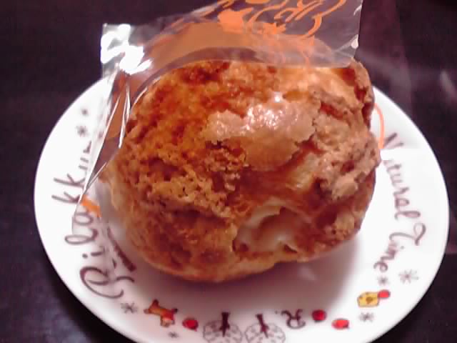 食べてみると、直前にクリームを入れたばかりの生地は、上のクッキー生地と合わせてザクザクカリカリした食感を強く残していて、香ばしさがたまりません(*^q^*) 中にたっぷりつまったカスタードもほど良い甘さでさっぱりした味♪ でらうまでした。