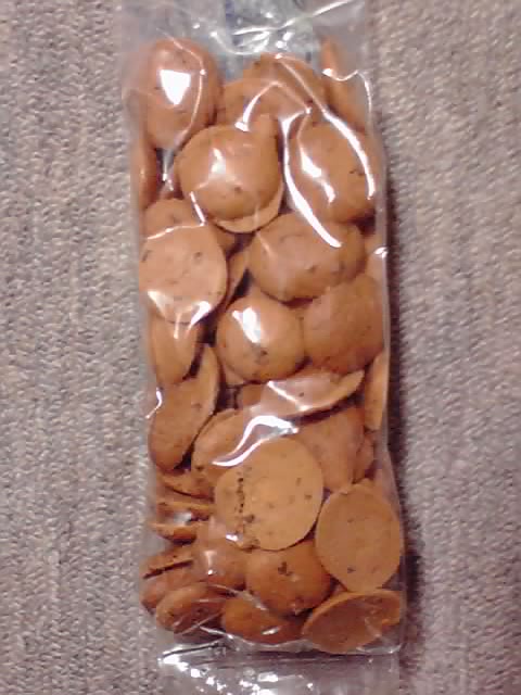 こちらがネギクッキーの中身です。見ての通り、ラングドシャのような小さな丸いクッキーに、みじん切りのネギが入っています。