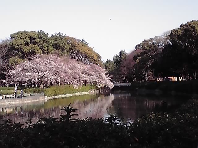 視線をちょっと横に向ければ、公園の中の方で咲いている桜がよく見えます♪