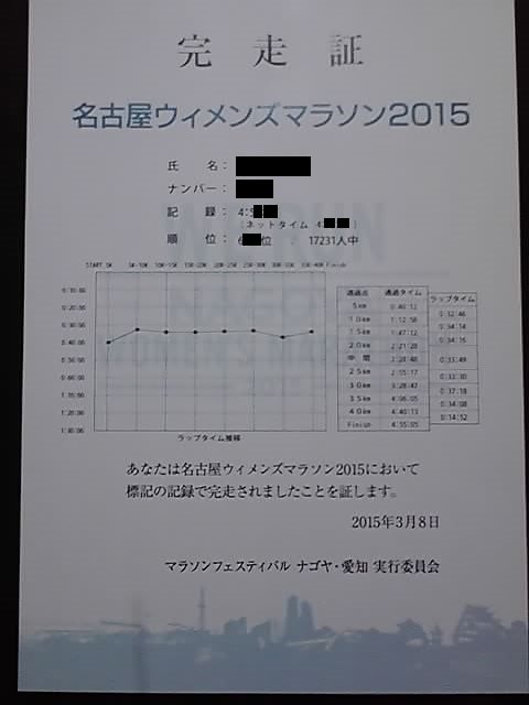 名古屋ウィメンズの完走証が来た! ティファニー行かなきゃ!!