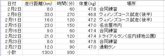 2月はかなり必死で走ったつもりですが、結局、走行距離は合計で130キロ…
