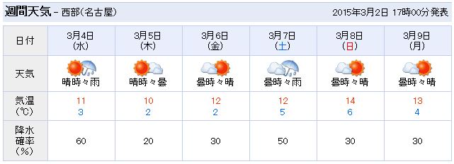 週間天気予報によると、名古屋ウィメンズマラソン本番の3月8日(日)はどうやら晴れのようです(^-^) しかも気温も最高14度とやや暖かめ!