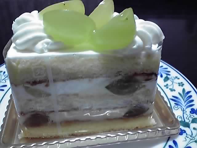 パティスリー・シェ・コーベとフルーツパーラーレモンがコラボしたスイーツ「シャインマスカットのショートケーキ」497円です。
