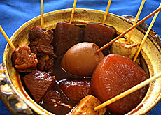ちょうど今朝、メ~テレの「ドデスカ!」で名古屋のおでんを特集していましたが、味噌おでんにはもう1種類、だし汁で煮た具材に味噌だれをかけて食べるタイプもあります。これもおいしいですよ♪