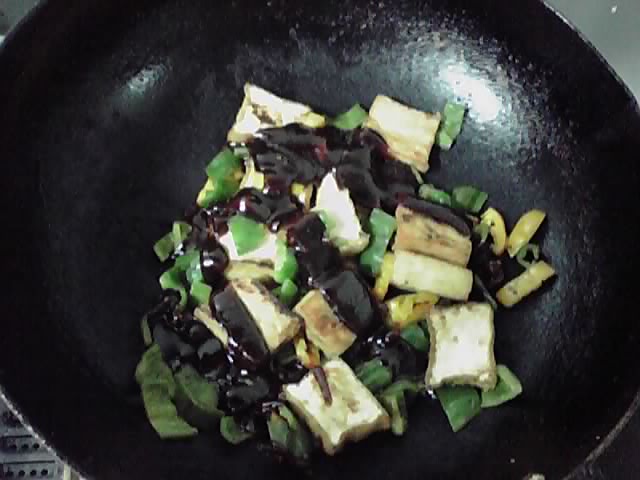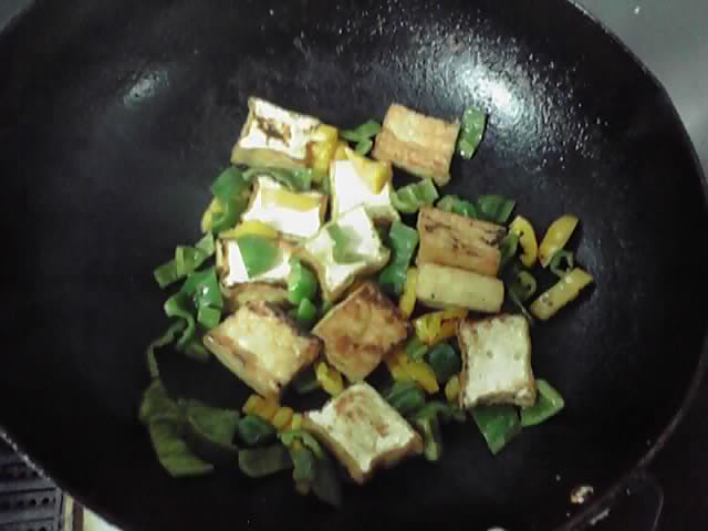④野菜にある程度火が通ったら、厚揚げを入れてさらに炒めます。