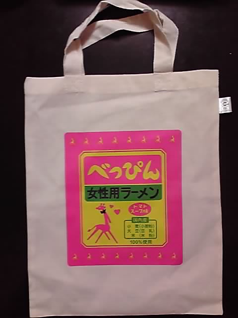 4個買うと、おまけでキリンラーメン柄のトートバッグがもらえちゃう! 5種類ぐらいの中から選ばせてもらえます。